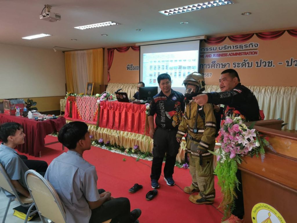 ในหัวข้อ การป้องกันอัคคีภัย ให้แก่นักเรียน สาขาช่างยนต์